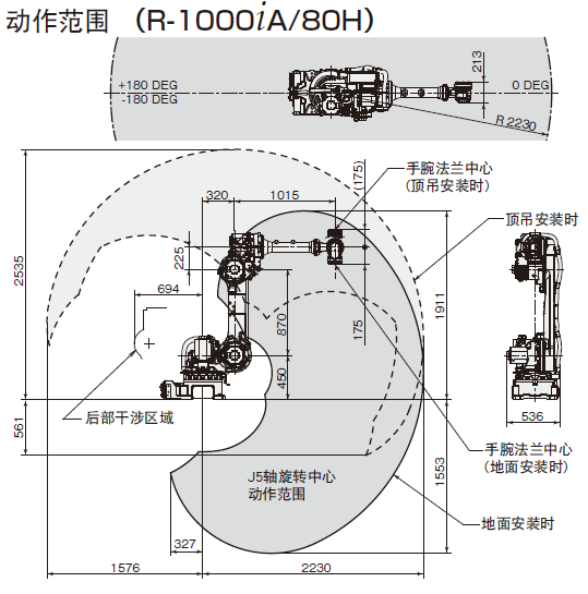 · R-1000iA具有紧凑的机器人结构和优越的动作性能,能够对应布局密集的搬运、点焊、码垛堆积等各种作业。